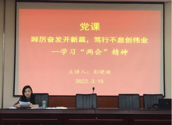 其后,彭晓丽以“踔厉奋发开新篇,笃行不怠创伟业”为主题开展了党课教育,分析了两会召开背景、当前国际形势,深入解读了两会精神。要求全体党员要深刻领会和全面把握《政府工作报告》等重点内容和精神实质,充分认识“两会”召开的重大意义,切实把思想和行动统一到党中央决策部署和“两会”精神上来。每位党员结合自身岗位实际,对学习内容开展了交流讨论,分享了心得体会,纷纷表示将立足自身岗位,发挥党员先锋模范作用,全心全意为职工群众办实事,以实际行动迎接党的二十大胜利召开。