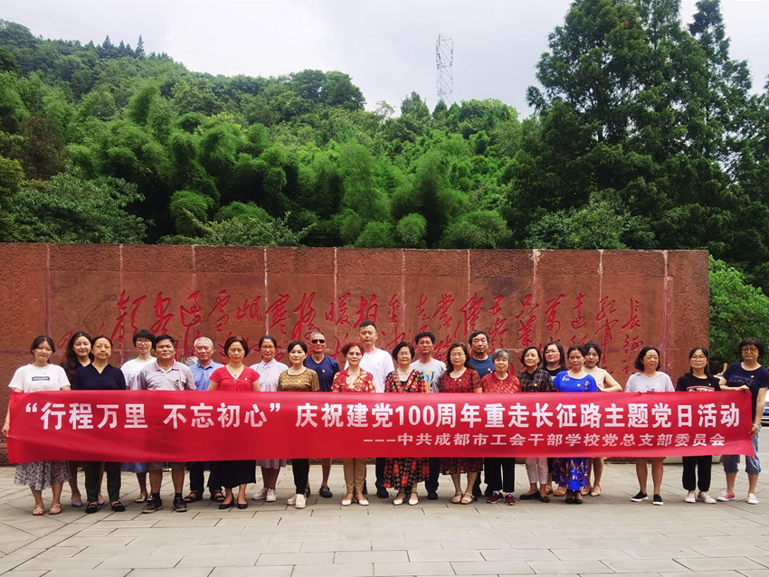 为隆重庆祝党的百年华诞,深入推进党史学习教育,传承长征精神,进一步锤炼党员干部坚强党性,做到学史力行,6月29日,中共成都市工会干部学校党总支部委员会组织全体党员走进红色圣地邛崃高何开展“行程万里 不忘初心”重走长征路主题党日活动。