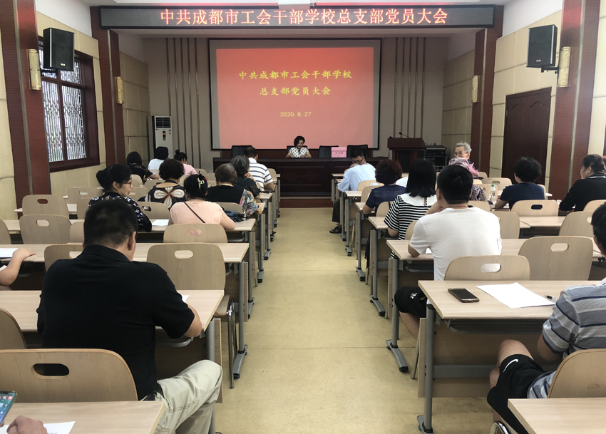 8月27日下午,我校在二环路校区召开了中共成都市工会干部学校总支部党员大会,开展党总支换届选举工作,全体党员参加。