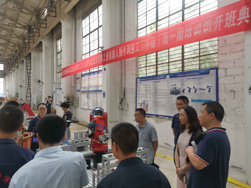 高永虹先后调研了智能制造系实训基地和徐丽焊接大师工作室,实地观摩了工业机器人操作调整工课堂上课情况,并就教学安排、授课教师以及课程实用性等问题,与参训学员进行了深入交流。