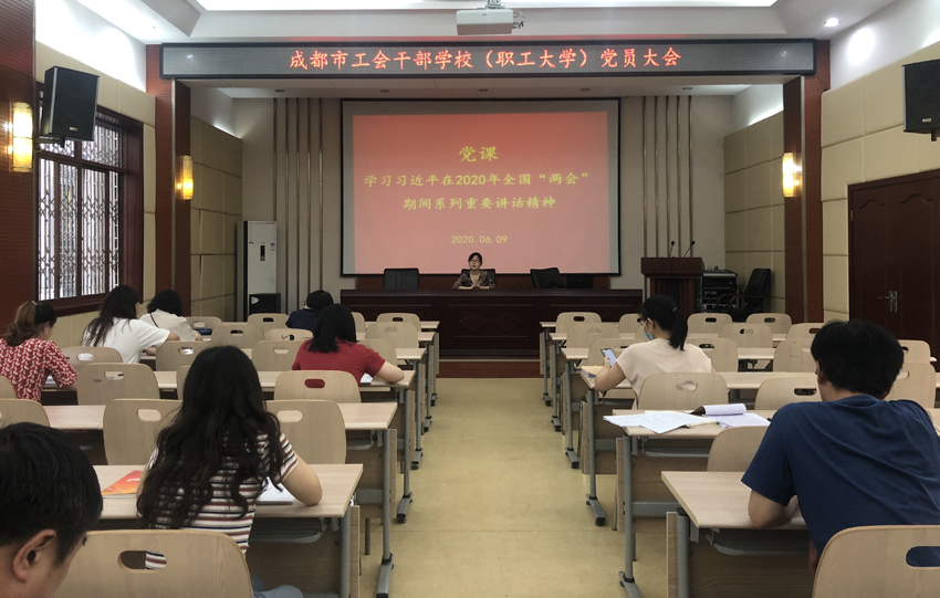 6月9日下午,我校在二环路校区召开全体党员大会,校党委副书记胡天琼开讲党课,全体党员干部参加了会议。