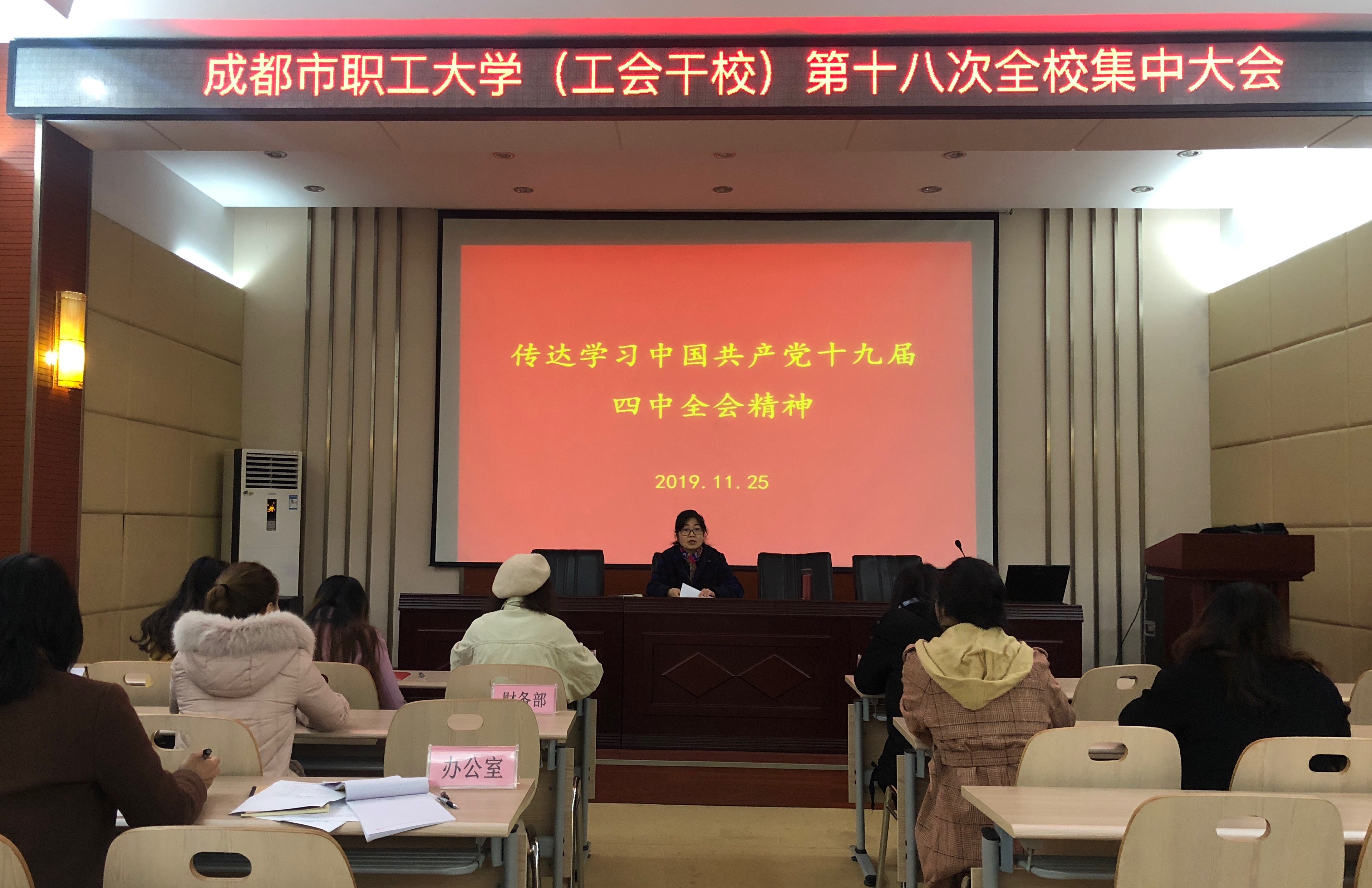 11月25日下午,我校在二环路校区召开了2019年第十八次全校集中大会,全体教职工参加会议。