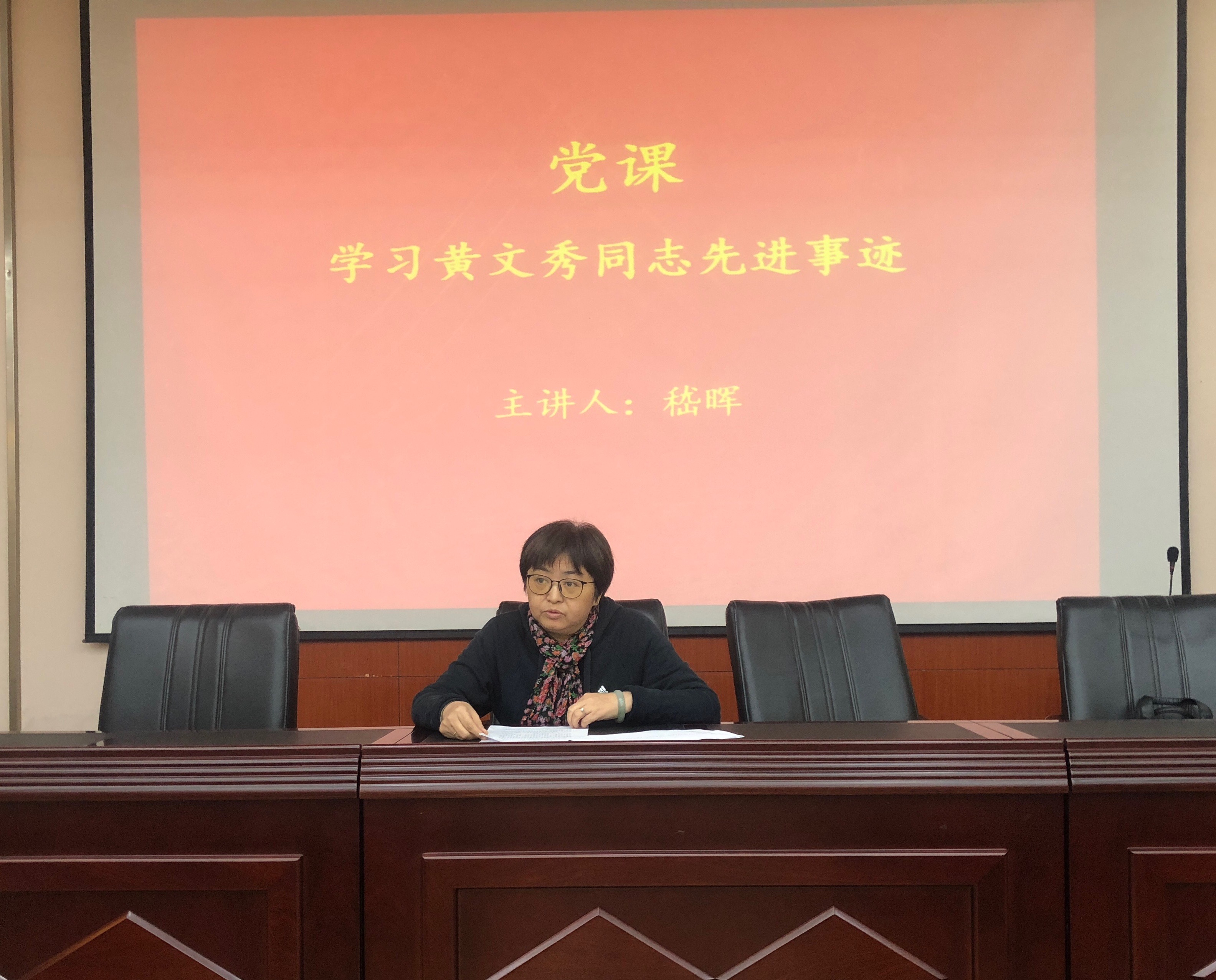 嵇晖以《永怀初心,勇于担当―学习黄文秀同志先进事迹》为题,带领全体党员学习了《中共中央关于追授黄文秀同志“全国优秀共产党员”称号的决定》,观看了《新时代青春之歌》专题片,并联系学校实际,就如何向黄文秀同志学习,不忘初心、牢记使命、立足岗位、担当实干进行了党课教育。她讲到,全体党员要以黄文秀同志为榜样,勇于拼搏,保持谦逊谨慎、艰苦奋斗的优良作风,以心底无私天地宽的胸怀和境界讲担当做奉献,坚守初心和使命,切实做好本职工作,向党和人民交上一份满意答卷!