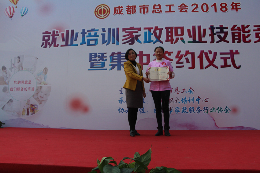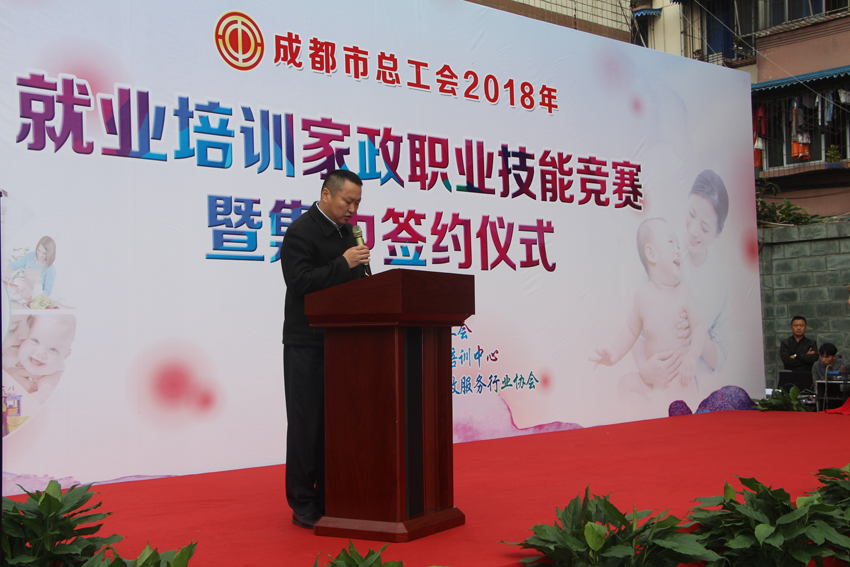 10月25日,由成都市总工会主办,成都市职工大学培训中心承办,成都市家政服务行业协会协办的2018年就业培训家政职业技能竞赛暨集中签约仪式在成都市职工大学盛大举行,成都市总工会保障部副部长罗增富出席本次活动。