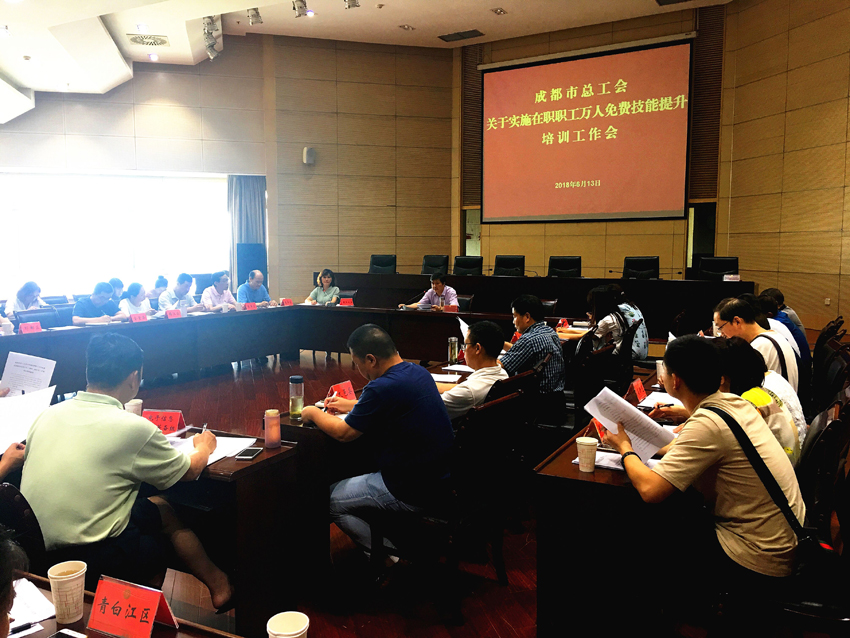 6月13日下午,市总工会党组成员、副主席徐锐主持召开成都市总工会关于实施在职职工万人免费技能提升培训工作会,来自成都21个区(市)县总工会(办事处)及市总六个产业工会(筹备组)分管该项工作负责人和工作人员参加了会议。