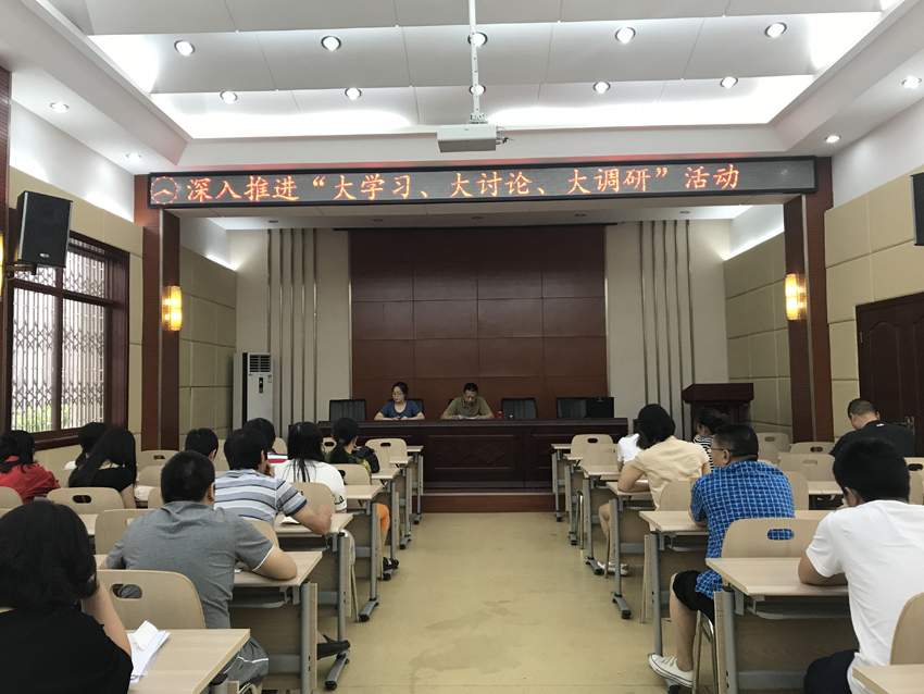 6月4日,校党委组织全体教职工集中,开展深入推进“大学习、大讨论、大调研”活动。会上,校党委副书记胡天琼总结了我校“大学习、大讨论、大调研”活动的开展情况,并传达了彭清华、范锐平同志近期对“大学习大讨论大调研”活动的重要指示,以及全市“大学习大讨论大调研”活动工作推进座谈会会议精神。强调在动员启动阶段取得良好开端后,在接下来一个时期我们要严格按照上级部门的要求,持续深入推进“大学习大讨论大调研”活动,要把学习的成果,讨论调研收集的意见、建议与实际工作相结合,切实解决问题。最后,传达学习了中共成都市委办公厅《关于切实做好2018年防汛减灾工作的通知》,强调汛期来临,各部门及时排查,值班值守人员遇到紧急情况及时上报。
