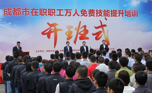 按照党的十九大关于建设知识型、技能型、创新型劳动者大军新要求,根据市委、市政府《成都实施人才优先发展战略行动计划》精神,成都市总工会在全面调研的基础上提出了在职职工万人免费技能提升培训,从2018年起,用5年时间,每年完成1万名以上各层次各类别在职职工技术技能提升,其中70%以上获得职业技能等级证书或特种行业上岗证书,高级工以上获证人数不低于30%,奋力为我市建设全面体现新发展理念的城市提供技能技术人才支撑。
