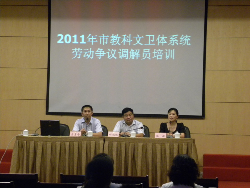 2011年7月7日,市教科文卫体系统劳动争议调解员培训班在成都市劳动人民文化宫多功能厅正式举行,由成都市总工会委托成都市工会干部学校承办。成都市总工会法律工作部部长胡艳桃、市教科文卫体工会主席古勇奇、市工会干部学校校长黎敏出席了开学典礼。