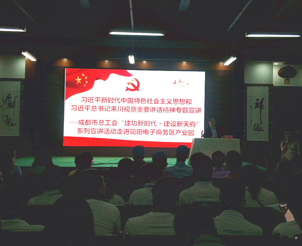 为深入宣传贯彻习近平新时代中国特色社会主义思想、党的十九大精神和习近平总书记来川视察重要讲话精神,按照上级工会和市委部署要求,市总工会围绕“不忘初心、牢记使命”主题教育,积极开展“建功新时代˙建设新天府”宣讲活动,推动党的十九大精神、习近平新时代中国特色社会主义思想和习近平总书记来川视察重要讲话精神进基层,引领广大职工群众衷心拥护核心、坚决拥戴领袖,坚定不移听党话,跟党走。