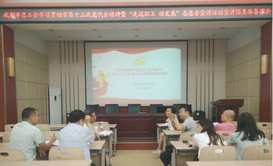 会议召集了高级政工师、全国优秀工会工作者标兵、成都市公共交通集团有限公司原工会主席周培验;全国劳模、成都市学雷锋典型、成都公交集团职工赖小刚;全国文明出租车驾驶员、成都市劳动模范、成都市蓉城出租汽车有限公司职工赵国成以及市职工大学教师等宣讲团相关人员,对《学习贯彻中国共产党成都市第十三次代表大会精神宣讲提纲》进行了认真学习、集体备课。宣讲团成员围绕学习宣传市第十三次党代会精神组织开展好“走近职工•话发展”志愿者宣讲活动发表了意见,以报告为纲探讨了怎样做到八个讲清楚,如何在宣讲中弘扬劳模精神、劳动精神、工匠精神,并深入探讨了如何结合基层实际,丰富宣讲工作方式方法,用职工群众喜闻乐见、接地气的宣讲方式,全面准确深入宣讲市第十三次党代会精神,推动党代会精神在职工群众中入脑入心、落地生根,用党代会精神统一思想,凝聚社会共识。备课会中周培验老师还按照市委、市总要求开展了示范课说课,指导宣讲团成员更好开展宣讲,切实增强做好宣传宣讲工作的责任感、使命感。市职工大学副校长彭晓丽也就宣讲工作规范、后勤保障、课件制作、安全责任等问题做了详细安排部署。