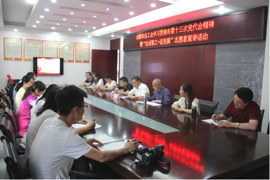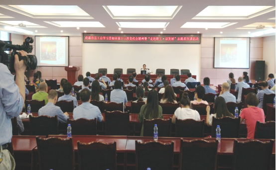 为深入学习宣传市第十三次党代会精神,5月24日成都市总工会学习贯彻市第十三次党代会精神暨“走近职工·话发展”志愿者宣讲团走进简阳,向一线职工宣讲党代会精神。