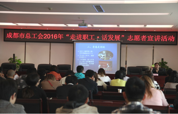 2016年10月25日下午,二公司与三公司组织职工80余人在三公司12楼会议室参加了成都市总工会举办的2016年“走进职工•话发展”志愿者宣讲活动。此次活动邀请到高级政工师、全国先进女职工工作者、全国能源化学系统优秀工会工作者、原川化股份有限公司工会主席王玉为广大青年职工宣讲:无悔的青春。