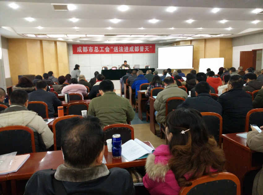 为进一步提高职工的法律素质和依法维权能力,使工会法律服务工作更贴近企业职工,1月29日上午,成都市总工会法律工作部联合成都市工会干校,在成都普天电缆有限公司开展了新一期 “送法进企业”讲座。现场共100余名企业管理代表和职工代表参加了培训。