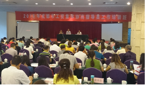 6月11日,由市总民管部主办,我校承办的2015年工资集体协商指导员培训班在邛崃开班,培训为期两天,来自全市各区(市)县总工会(办事处)分管领导、承办科室负责人、工资集体协商专职指导员,市总各产业工委(会)负责人共计110余人参加培训。