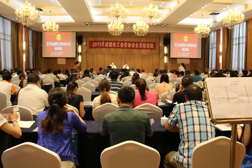 6月24日,由市总经保部主办,我校承办的2015年成都市工会劳动安全员培训班在蓉城四季酒店顺利举办。本次培训为期一天,来自各区市县、各产业工委的企(事)业单位劳动安全人员共190余人参加了此次培训。