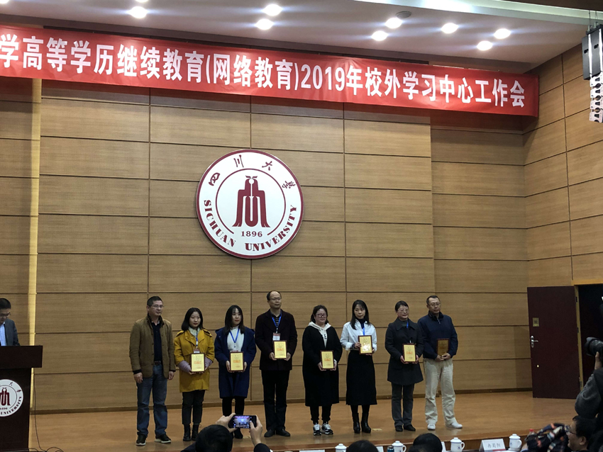 2019年12月12日上午,四川大学高等学历继续教育(网络教育)2019年校外学习中心工作会在四川大学望江校区召开,我校党委副书记胡天琼、教研部主任嵇晖带队参加了会议。会议以“落实立德树人的根本任务、推动网络教育提高质量规范发展”为主题,主要传达了教育部及学校有关规定和要求,总结了2019年招生、教学管理、学生服务等有关工作并布置了2020年相关工作,表彰了优秀校外学习中心和优秀个人,其中我校韩龙老师被授予“教学管理先进个人”荣誉称号。