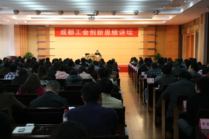 3月19日下午,市总工会在市总机关举办了第三期成都工会创新思维讲座,市总机关干部、各区(市)县工会(办事处)领导干部、各产业工委(会)直属基层工会主席、成都市工会专职工作者等270余人参加。山西省太原市小店区北格镇总工会主席曹晓斌同志作了题为《当工会主席就要挺直腰杆为职工维权》的专题报告。