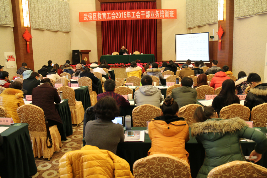 12月23日,由武侯区教育工会主办、我校承办的2015年武侯教育工会干部业务培训班在邛崃顺利开班。本次培训为期三天,共73名武侯区教育系统工会干部参与了培训。培训内容涉及到中国特色社会主义工会理论、传统文化国学与人文素质的提升、厂务公开民主管理标准化解读、新时期工会工作等,并组织在机投中学开展校务公开民主管理现场会,取得了较大的反响。培训结束后,我校为参加培训的工会工作者颁发了工会干部岗位培训合格证。